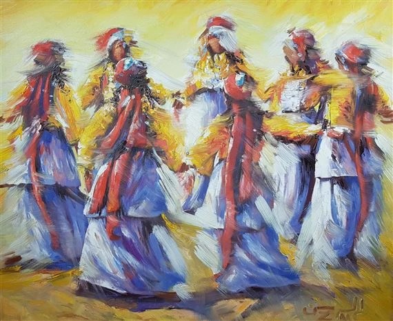 F.B. : Parmi les artistes marocains qui m’inspirent particulièrement, j’aimerais citer Hassan El Glaoui, Mahi Binebine ou encore Fatima Hassan El Farouj et Abdelatif Zine dont les univers méritent d’être découverts. Le tableau Les danseuses de Abdelatif Zine pourraient représenter cette pièce. Ce sont 7 danseuses qui dansent en cercle sous forme de rituel ou de célébration comme dans Näss. Il y a une place centrale au mouvement, au rythme et à la couleur qui créent une atmosphère lumineuse et vibrante.